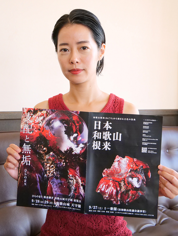 根来塗を独自のアートに ひらのまりさん地元初個展