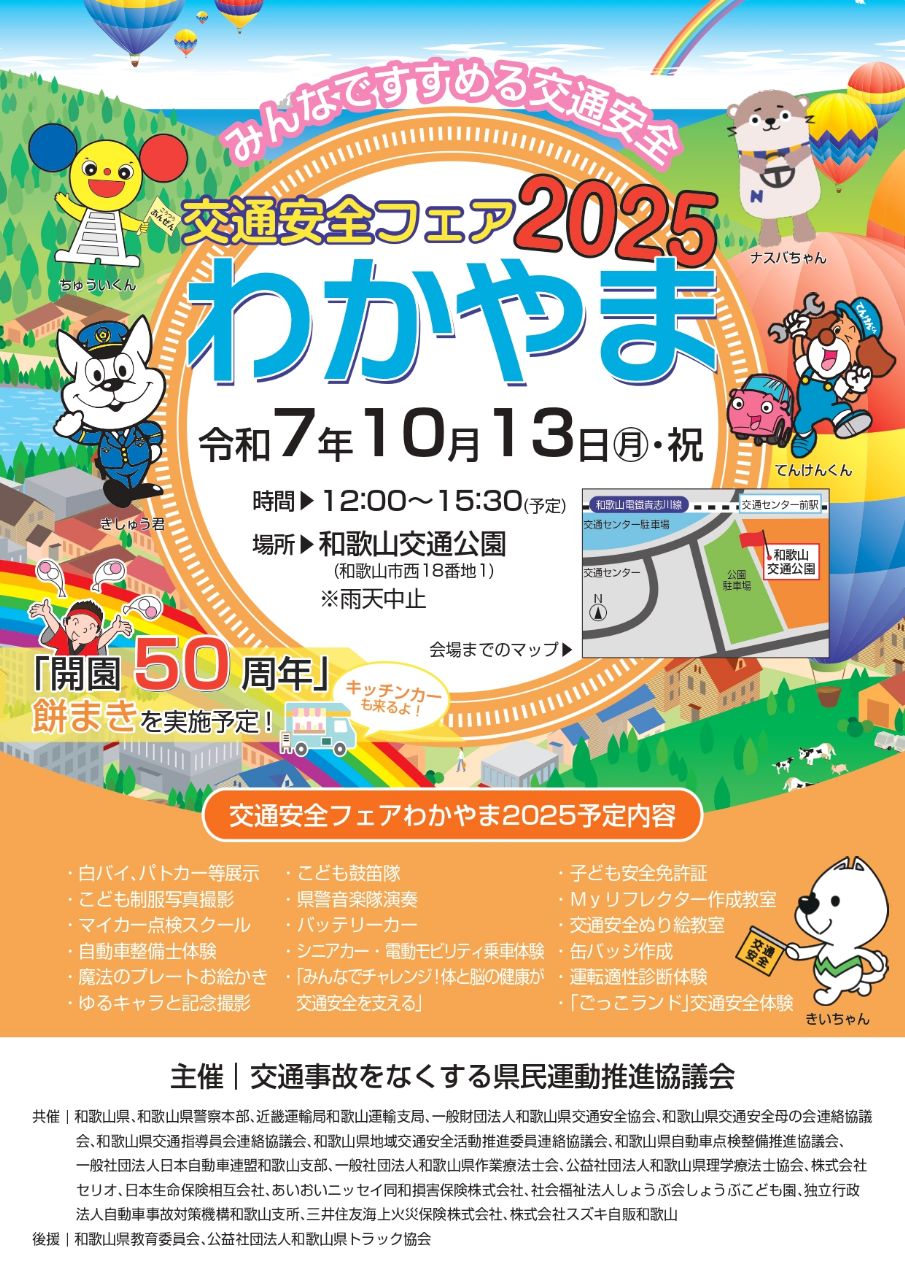 開園50周年を迎える和歌山交通公園で、「交通安全フェア2025 わかやま」が開催されます。