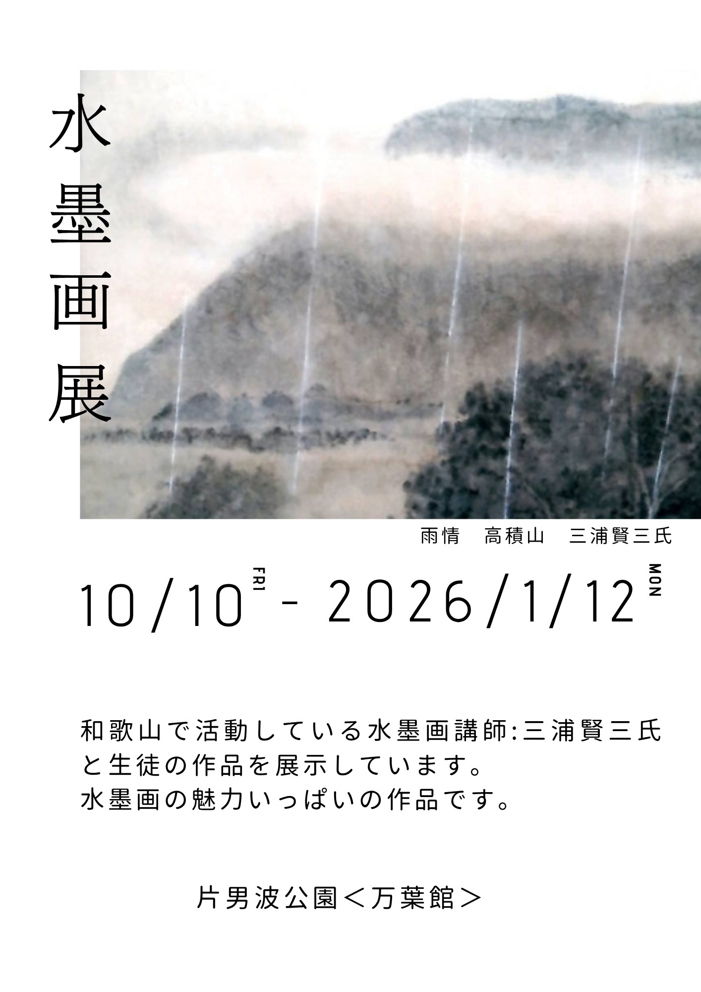 2026年1月12日(祝)まで、和歌山市の片男波公園万葉館で「水墨画展」が開催されています。