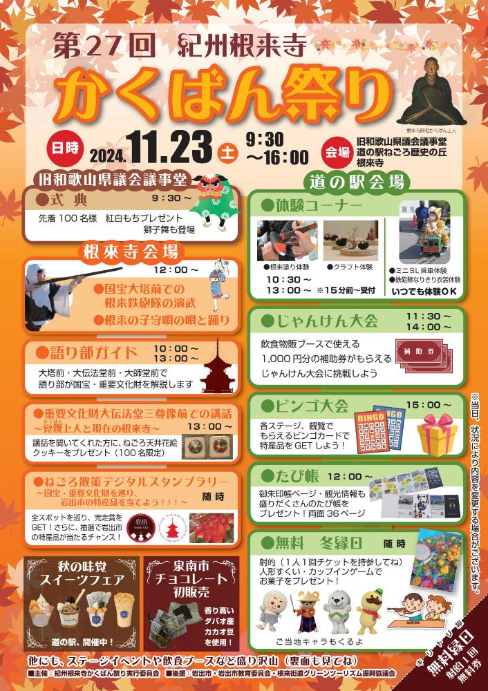 | 開催場所 | 旧和歌山県議会議事堂・道の駅ねごろ歴史の丘・根來寺 和歌山県岩出市根来2020-1 |