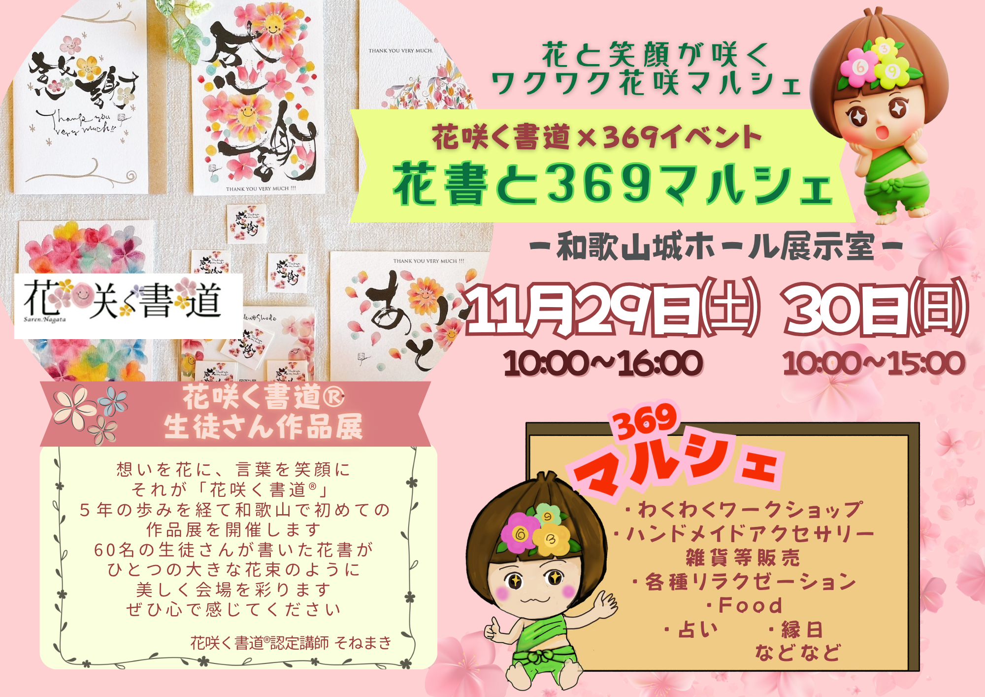 11月29日(土)・30日(日)に、和歌山城ホール展示室で「花書と369マルシェ」が開催されます。