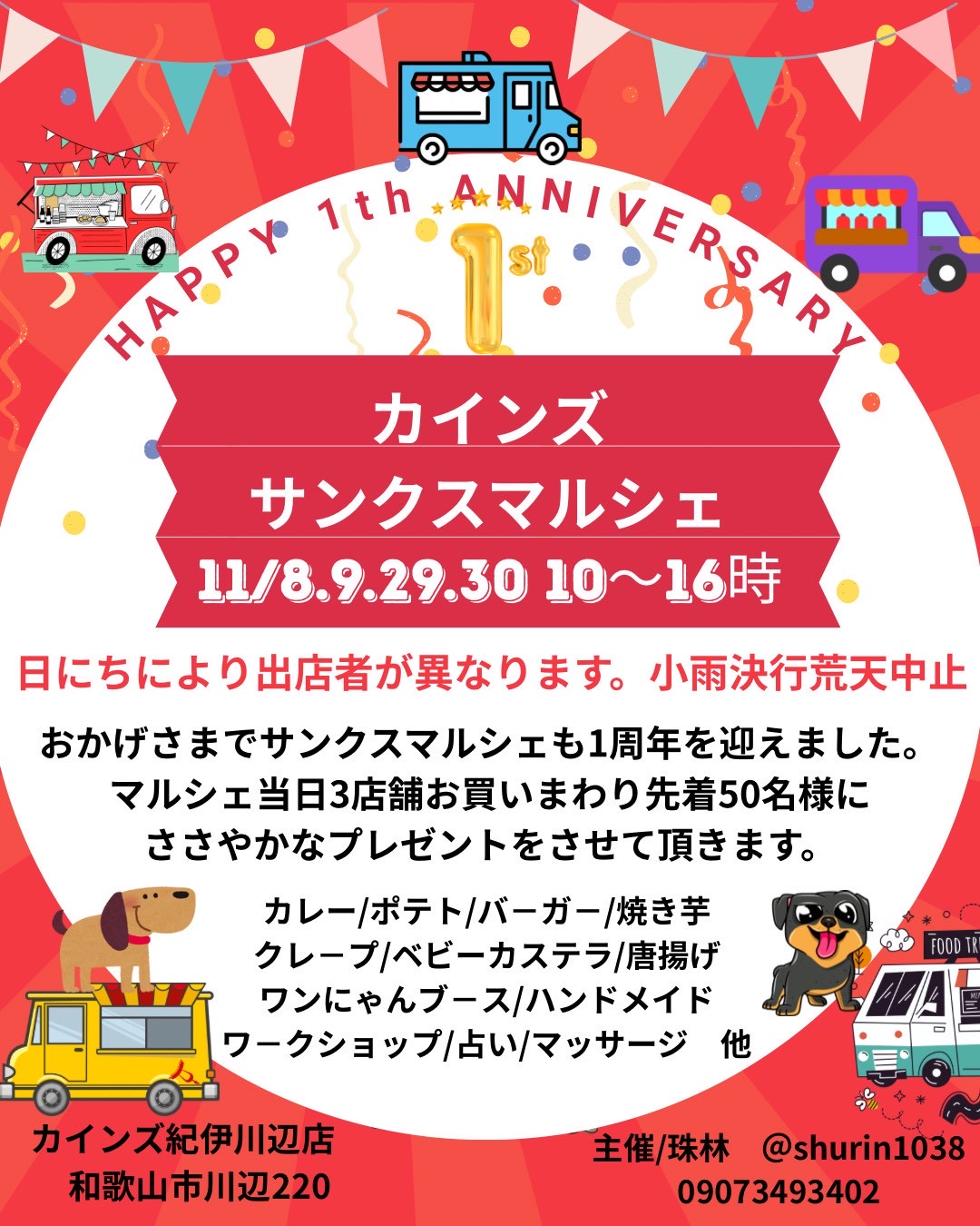 11月29日(土)・30日(日)、和歌山市のカインズ紀伊川辺店で「カインズサンクスマルシェ」が開催されます。
