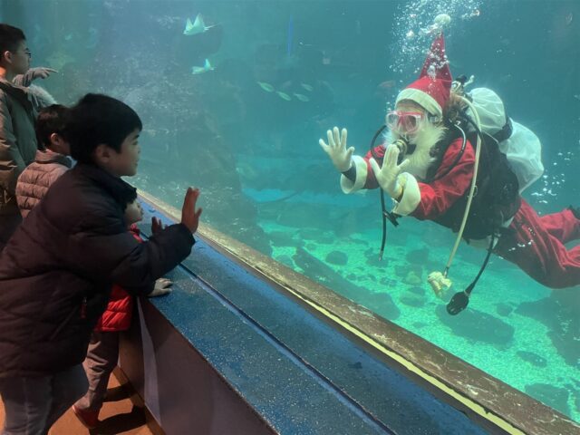 大水槽「黒潮の海」潜水作業公開 サンタが大水槽にやってくる!!