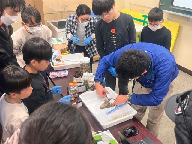 カエルやヘビの標本を製作し、体のつくりなどを学びます。