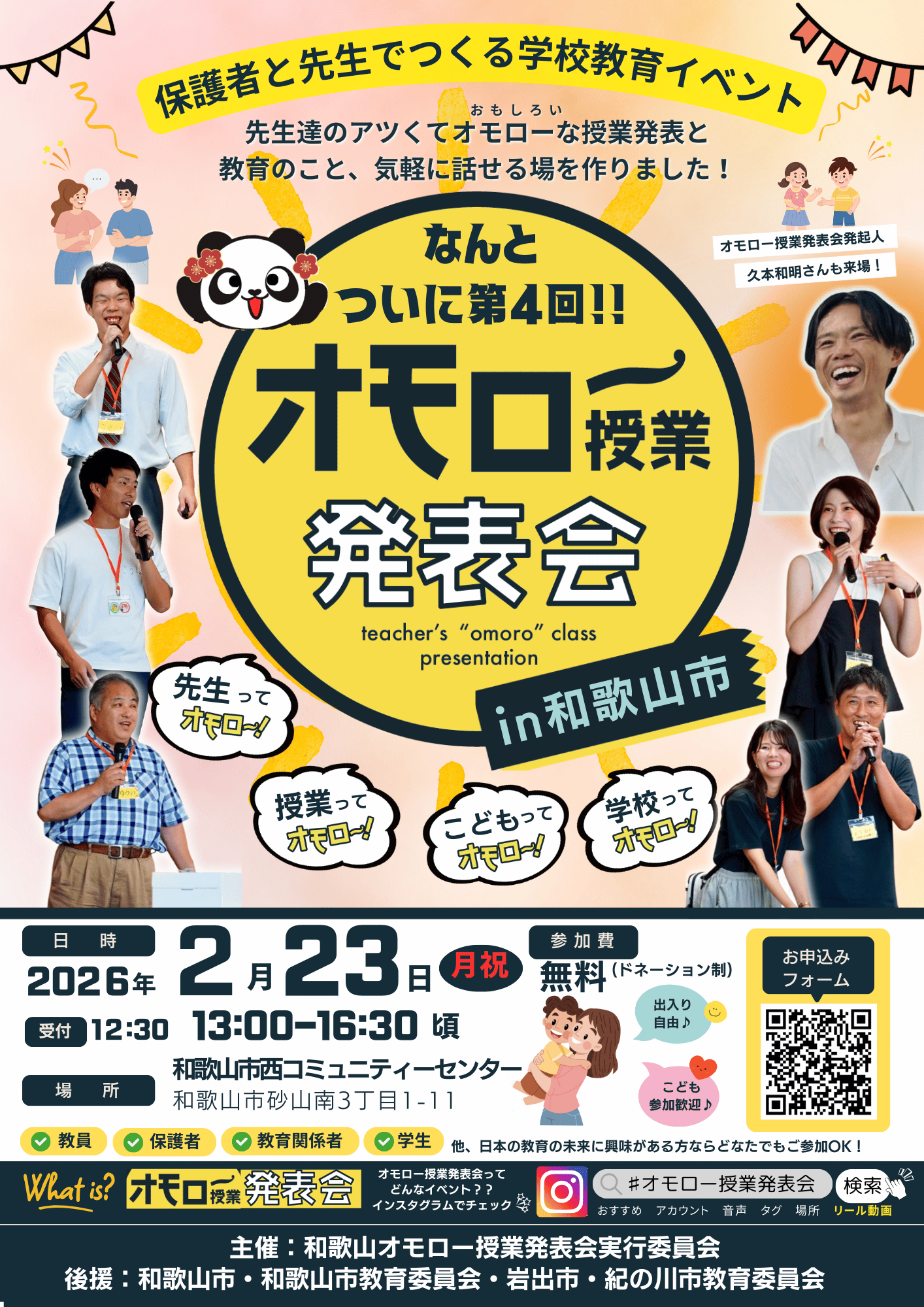 2月23日(祝)、和歌山市西コミュニティーセンターで「第4回オモロー授業発表会in和歌山市」が開催されます。