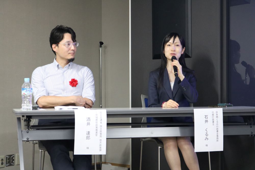 日本橋くるみ行政書士事務所代表の石井くるみさんは、不動産特定共同事業による公的・民間不動産の利活用法を、鎌倉市や京都市などの実例を交えて説明。投資家に魅力的に映る空き家リノベーションについても話していました。