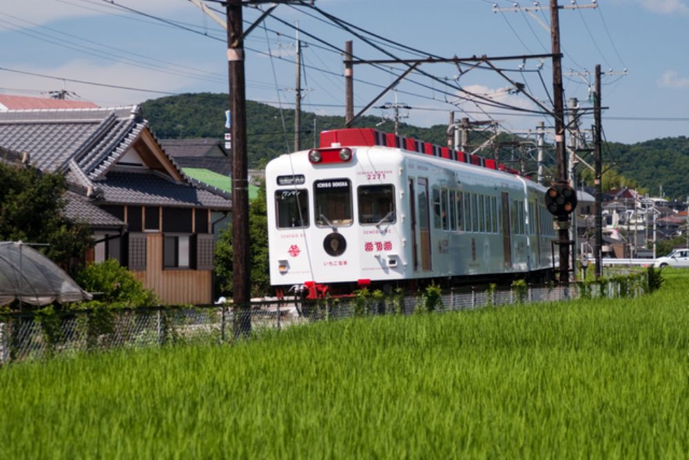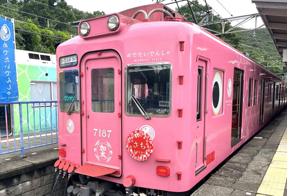 南海電鉄加太線を走るラッピング車両で、鯛など海の幸をモチーフとした可愛い車両です。
