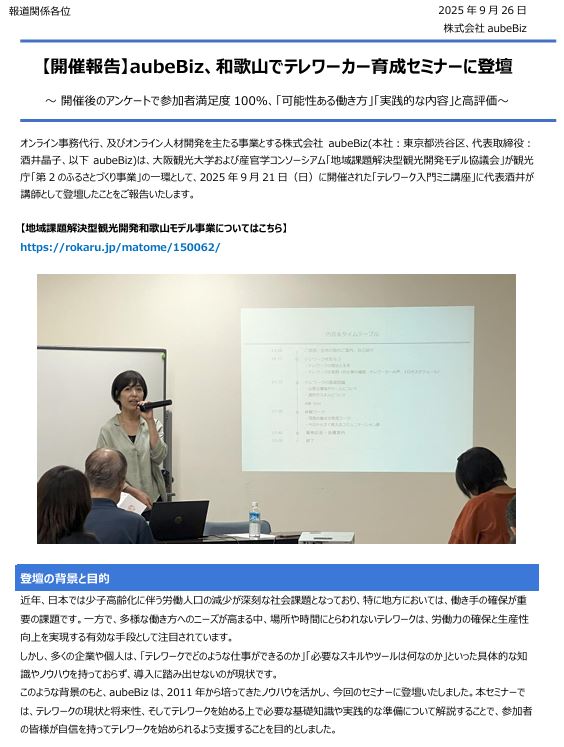 和歌山でテレワークを始めよう「テレワーク入門ミニ講座」