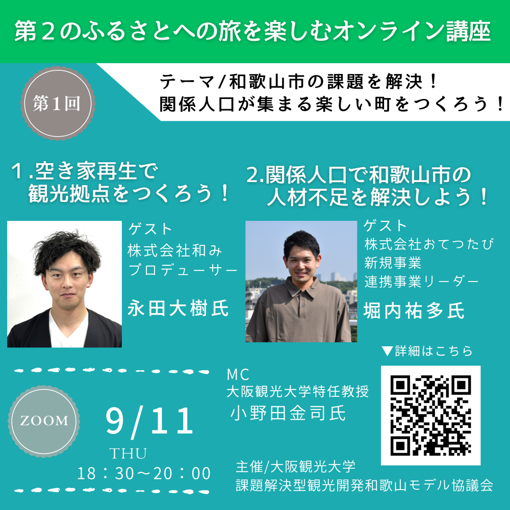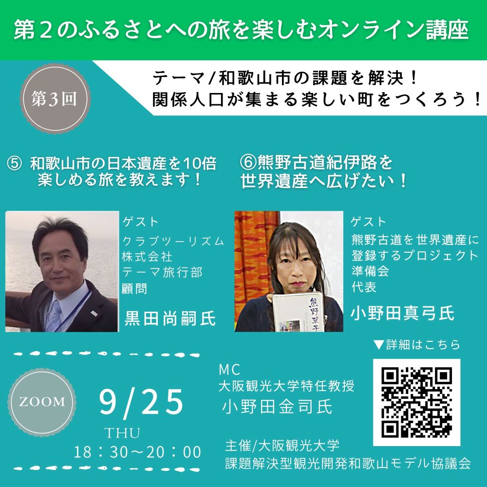 主催/大阪観光大学、課題解決型観光開発和歌山モデル協議会(株式会社和み、クラブツーリズム株式会社、観光立国プラットフォーム)