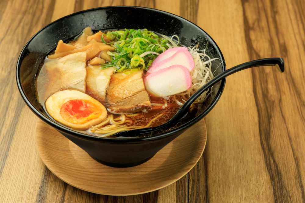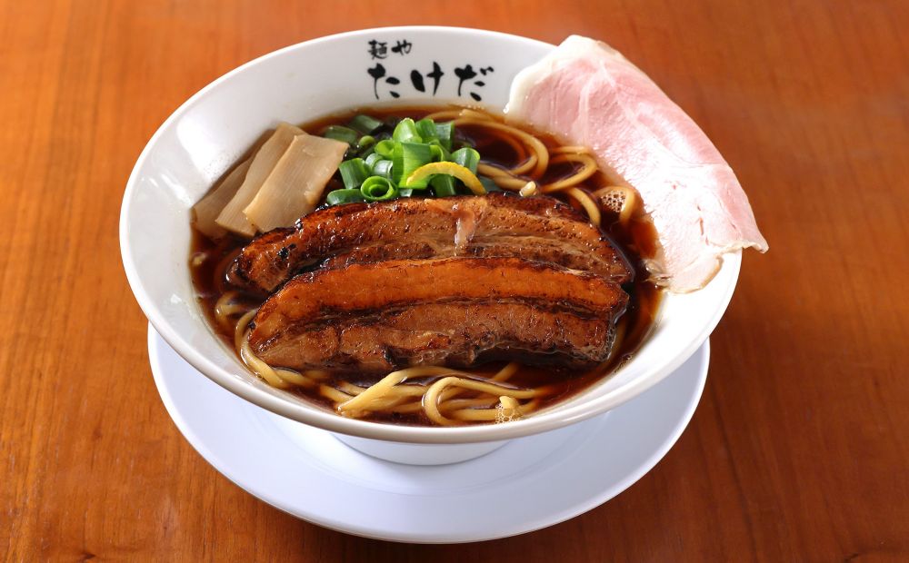和歌山の系譜である、醤油ベースのスープは、すっきりとした口当たりながらコクも感じられる唯一無二の存在。中太麺は、もちもちの食感で、おいしさが持続します。