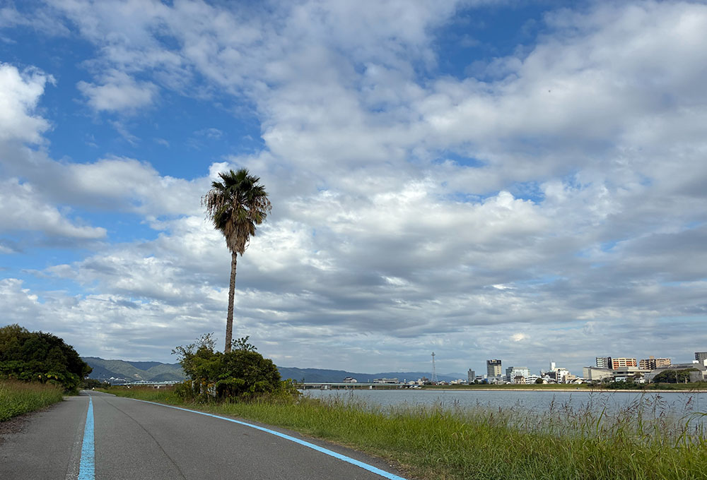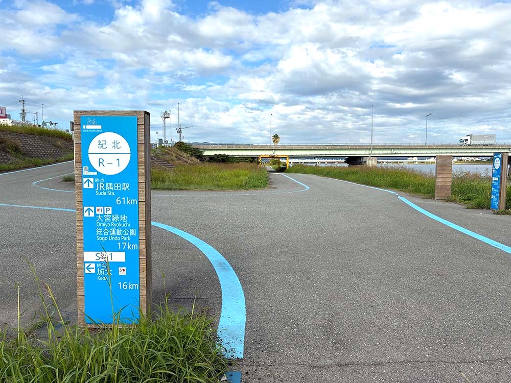 和歌山市の「紀ノ川大橋」を起点に、上流の「岩出橋」方面へ伸びる紀の川沿いのコース。「紀の川サイクリングロード」のコースでもあり、アップダウンがほぼなく信号もゼロ。距離は、岩出橋までなら片道約16kmですが、体力に合わせて、さらに橋本市方面へ延伸してロングランにも挑戦できます。