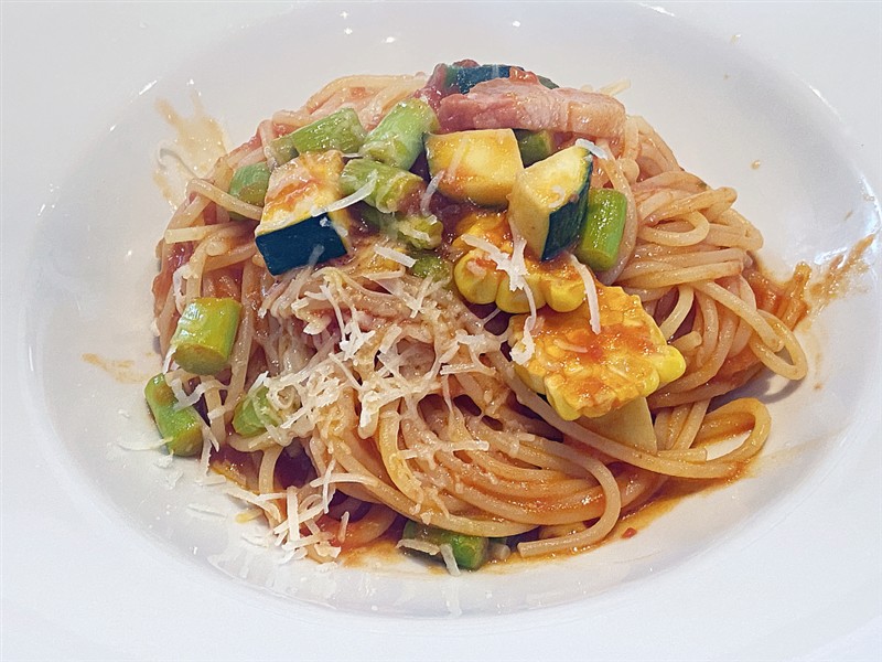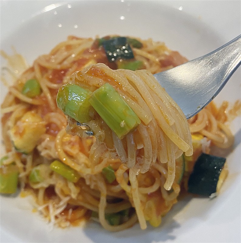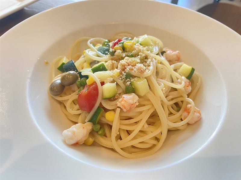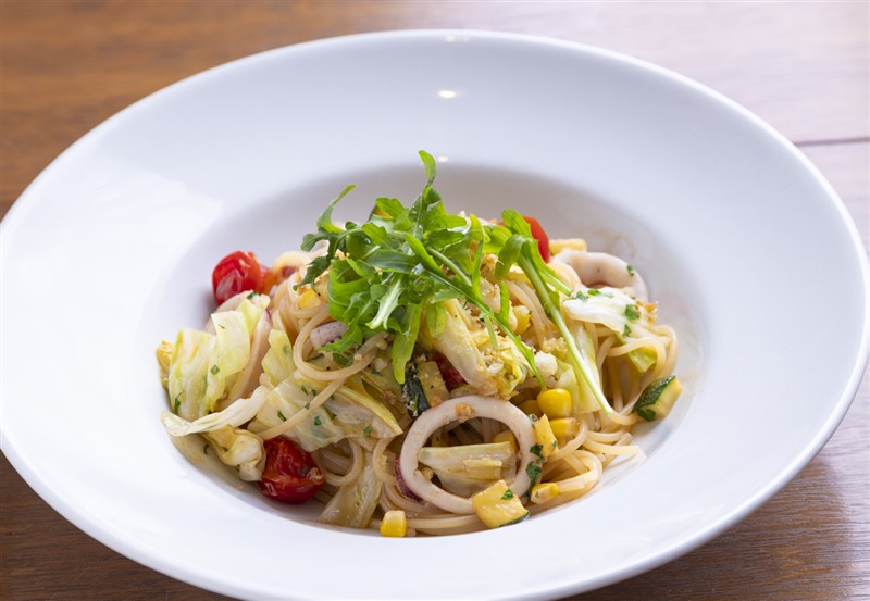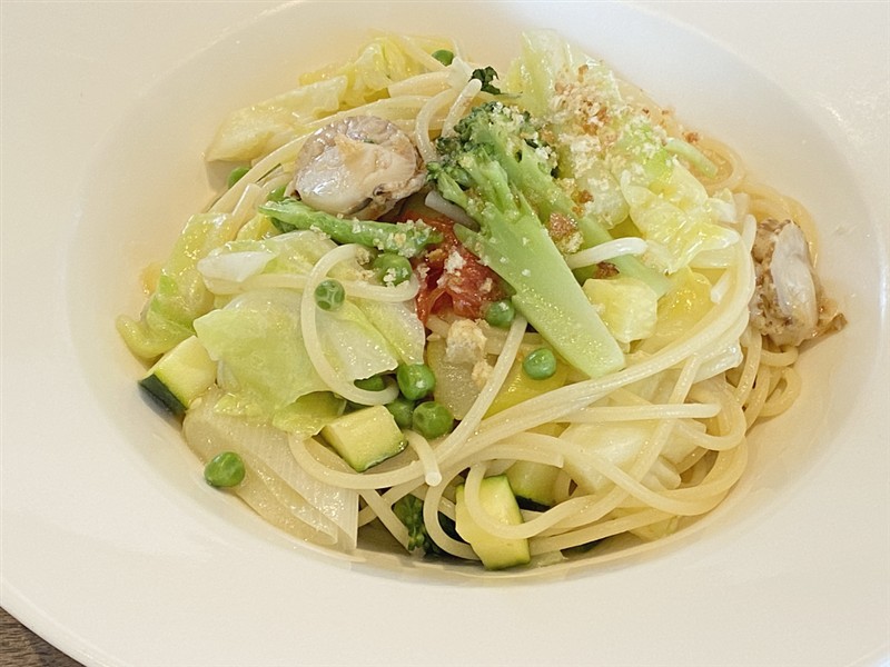 「語りばさ」のランチパスタは、オイルソースもトマトソースも、どちらも季節の野菜がたっぷり。