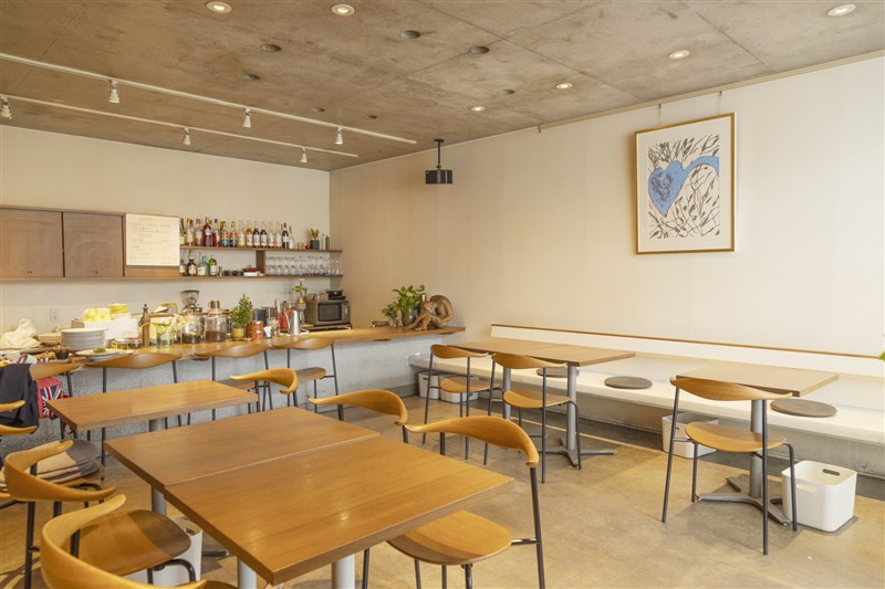 白を基調に木の温かみを感じる店内。入口の一面の窓から明るい陽が差し込み、街中にいながらもくつろげる空間です。