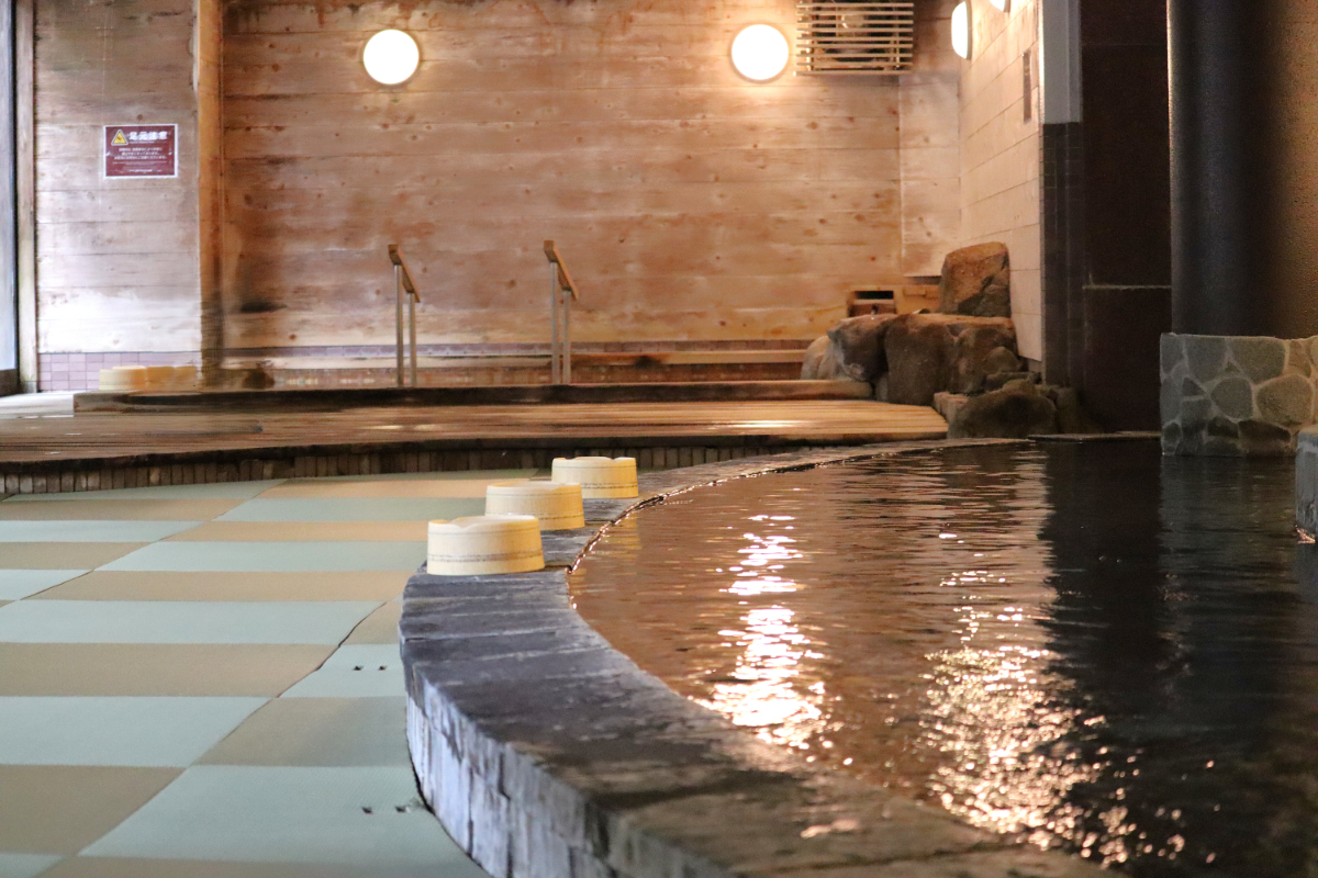 お腹いっぱいになったあとは温泉へ。床には畳が敷かれ、和の趣きと、足のさっぱりとした触れ心地があり、滑り辛く、子ども連れにとてもありがたい浴室でした。