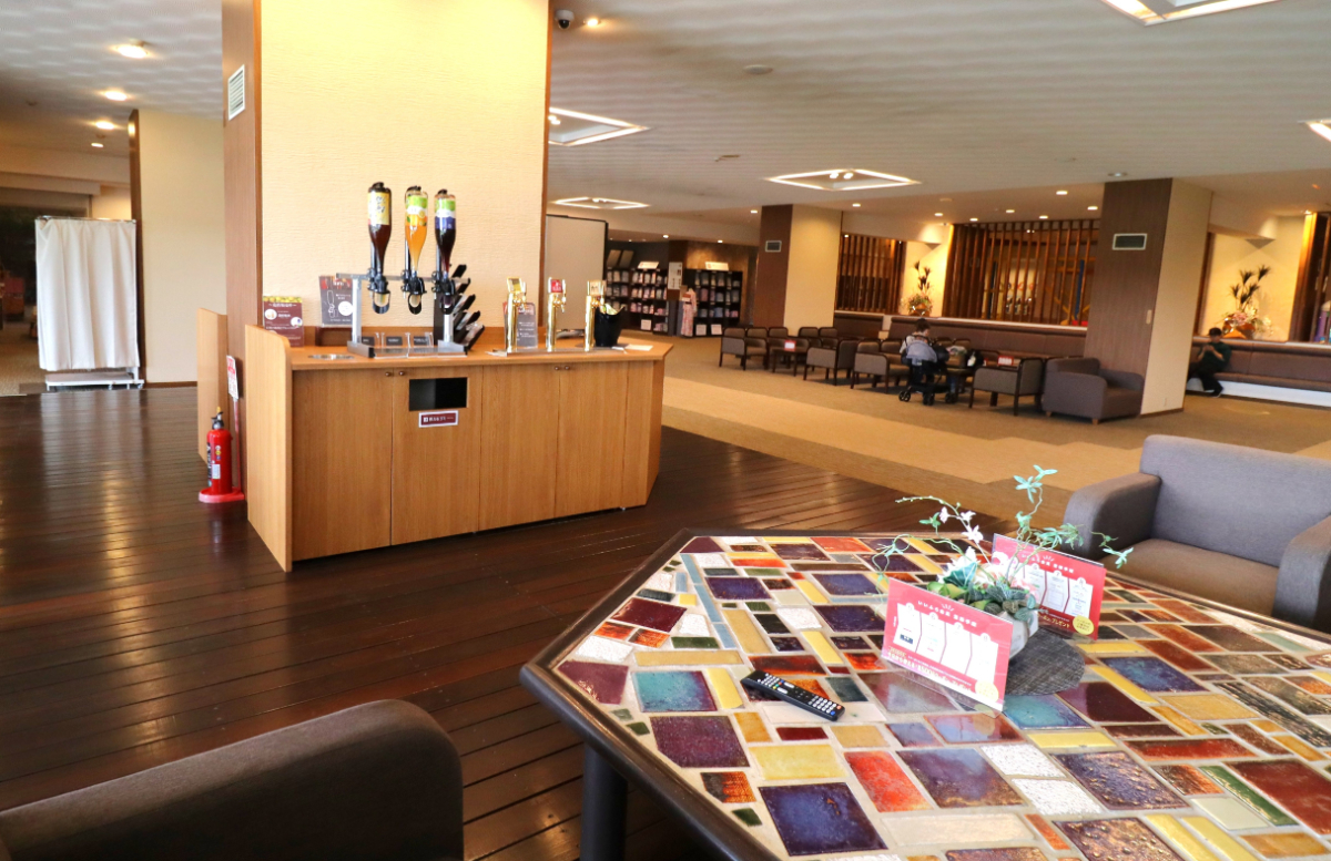 大きな窓から光が差し込み、落ち着いたソファで過ごす時間は、旅先ならではの特別感がありました。ドリンクを片手に、ほっと一息。ロビーを挟んで向かいに、後述するキッズコーナーがあるので、子ども・大人、それぞれの楽しみ方ができます。
