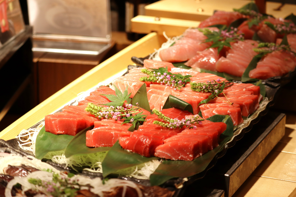 「勝浦市場直送生マグロのお造り」は、「大江戸温泉物語Premium 白浜彩朝楽」の限定メニュー。新鮮だからこそ味わえる、もっちりとした食感と、濃厚ながらすっきりとした後味、脂の甘みがたまりません。
