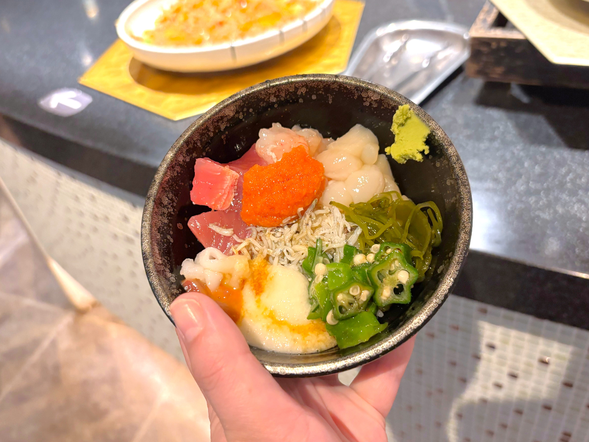 朝食では「特撰海鮮丼」を。天然本まぐろを好きなだけ乗せられる贅沢に、朝からテンションが上がりました。子どもは焼きたてクロワッサンとメロンスムージーがお気に入りに。親子それぞれが満足できる内容でした。