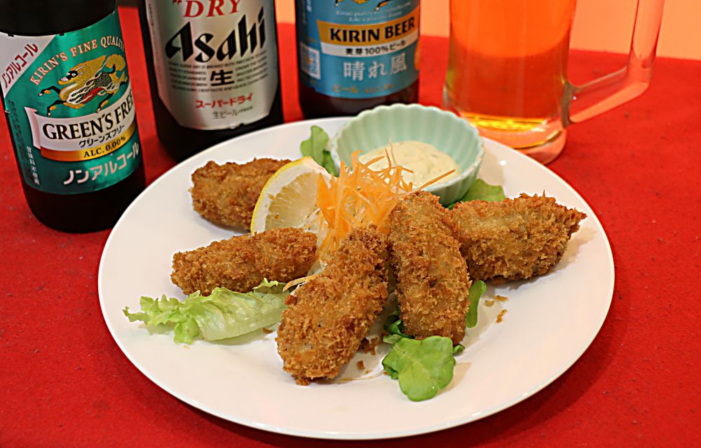 秋のおすすめは、「カキフライ」(680円)。衣がサクッと、カキ本来のクリーミーな旨味を閉じ込めた逸品。タルタルソースをからめてひと口かじるごとに、揚げたてならではの熱々の幸福感が、口いっぱいに広がります。ビールがすすむ定番メニューがついにシーズンを迎えました。