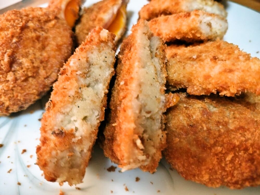 わが家の人気はこちら、「チーズはさみチキンカツ」(220円)。ジューシーな鶏肉にまろやかなチーズがとろりと溶け込み、ボリュームも満点。弁当に入れれば「冷めてもうまい」と高校生男子も大喜び。おかずの一品としてはもちろん、パンに挟んでカツサンドにするのもおすすめですよ~。