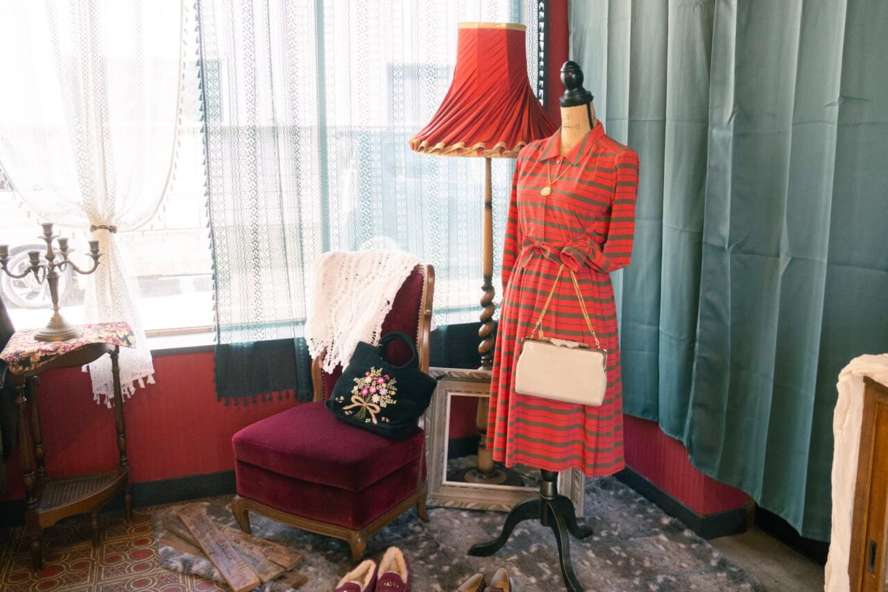 パリ・モンマントルを舞台にした映画「アメリ」がモチーフだという店内は、赤と緑を基調とした色使いで、パリのアパルトマンを彷彿とさせるおしゃれな空間。オーナーのかよさんは「お店を自分の部屋のように、お洋服を選んで、アクセサリーを選んで…みたいなとっておきの場所にしたいと思って」と話してくれました。