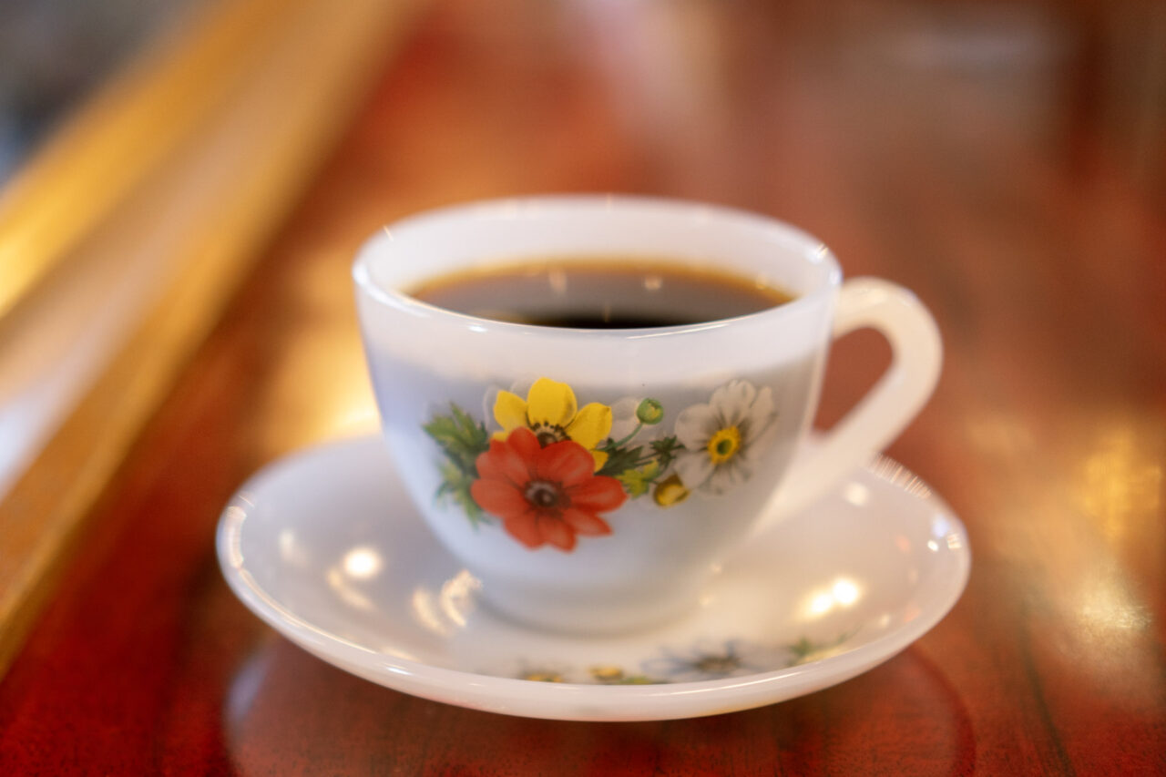 過去にコーヒー専門店「日方珈琲焙煎所」で働いていたかよさんがハンドドリップで丁寧に淹れるオリジナルブレンドのコーヒーは、苦みと酸味が控えめでまろやかな優しい風味。もちろんバスクチーズケーキとの相性も抜群です。