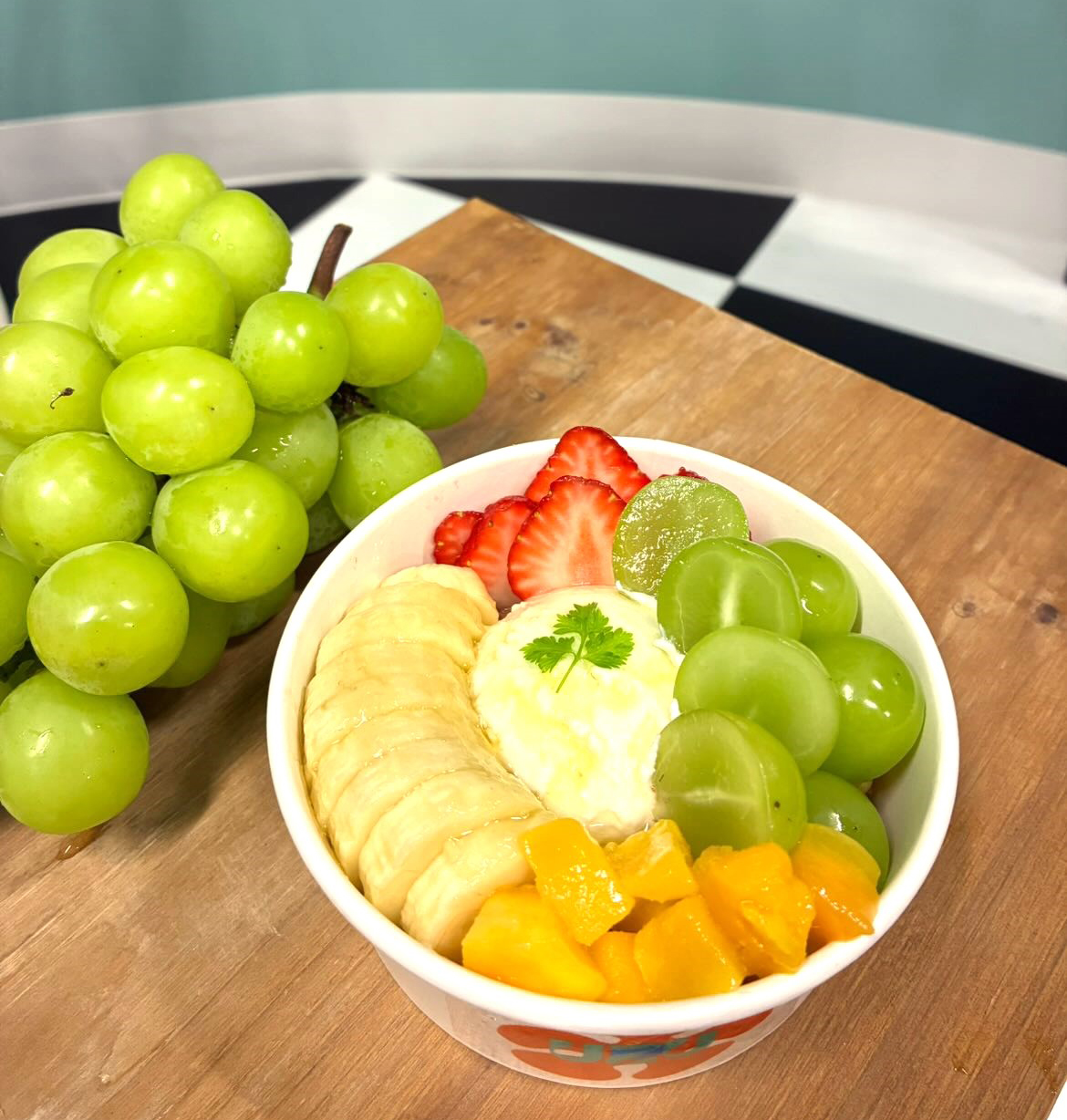 冷やしたチョコレートをパリパリ割って楽しむ「クラッキング・チョコレート・アサイーボウル」(1680円)や、大粒のシャインマスカットが入ったグリークヨーグルトも販売(2025年11月30日まで)。