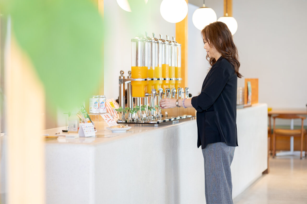 カフェで提供されるメニューの材料は、和歌山産の柑橘をはじめとする地域由来のものを使用。併設のショップでは、カフェメニューに使われている青果やジュース、ジャムなどの加工品も販売します。