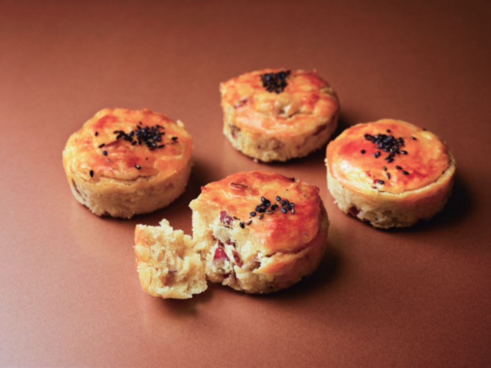 満月のようにまんまる黄色く焼き上げたみるく饅頭「月化粧」。新鮮なミルクとバターたっぷりの自家製餡がとろけるような味わいの西洋和菓子です。