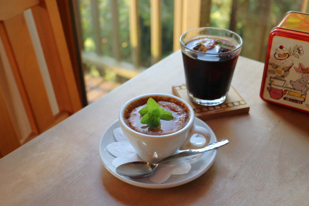 木のぬくもりが漂う店内は、1階がアトリエ、2階がカフェスペースになっており、窓の向こうには緑の深い街並みを見渡せる絶景が広がります。天気の良い日は、心地いい風の吹くテラス席も人気! ペット同伴の方も、テラス席で食事ができます。