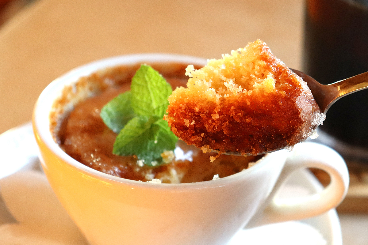 レモンケーキは、マグカップに入っており、ときめく可愛いらしい見た目。粗めのアイシングが表面にかかり、砂糖のじゃりっと感・とろっとした食感が楽しい一品です。