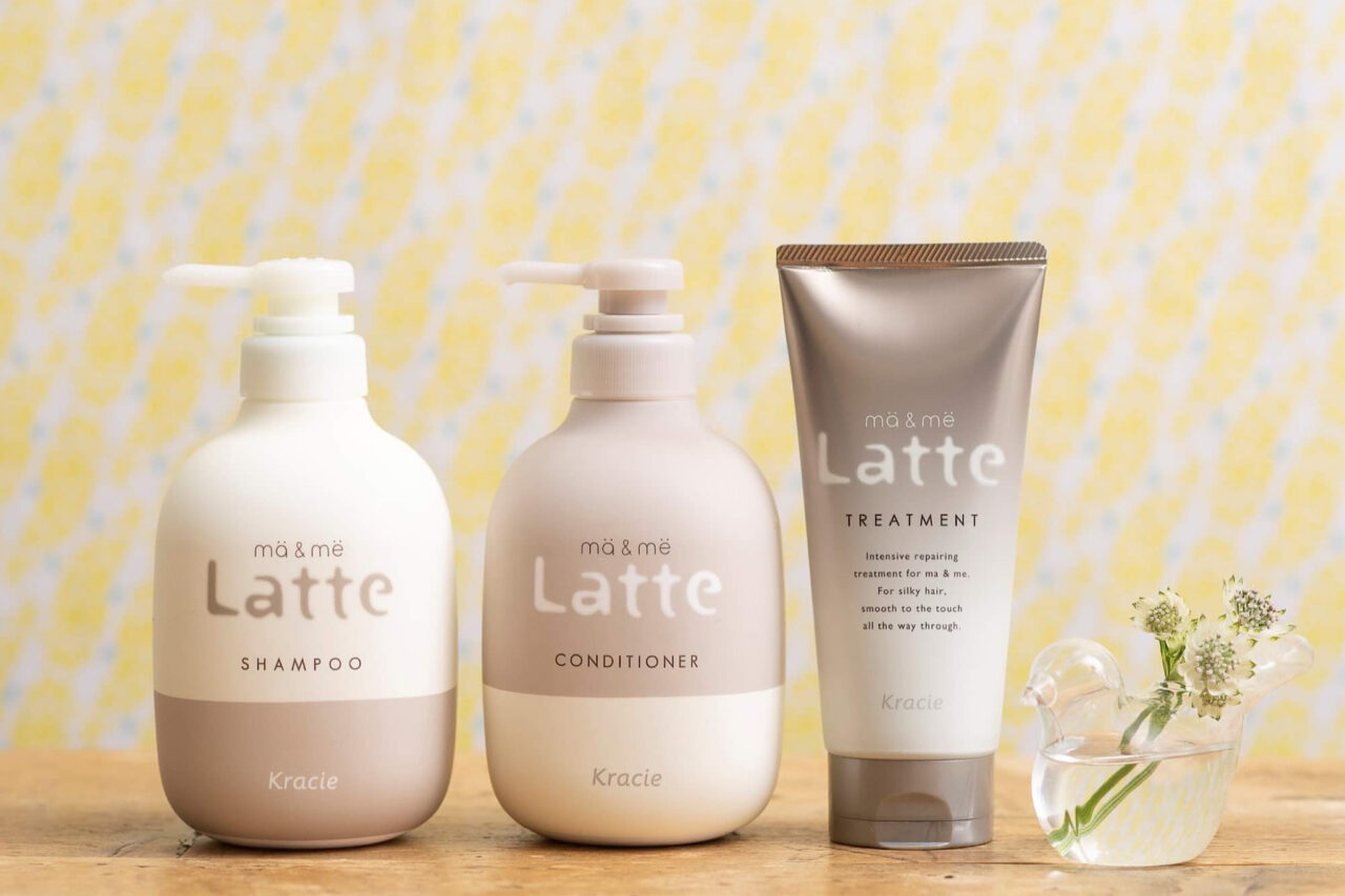 ぬるつかないミルクコンディショナーは髪にすっとなじんで指通りツルン(写真中)。