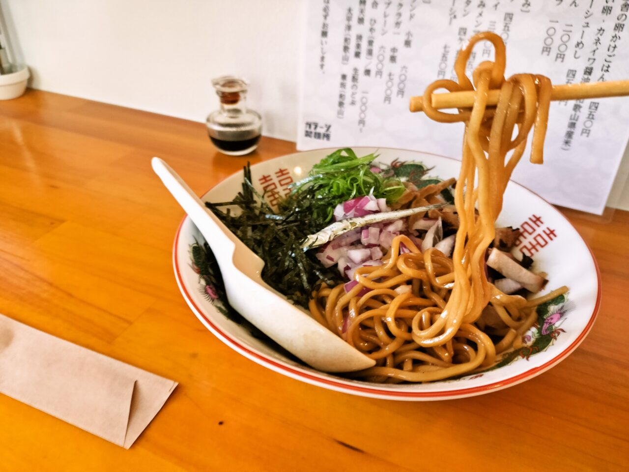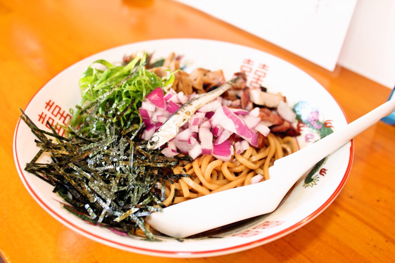 こちらは“まぜそば”スタイルで提供される「煮干し鶏油まぜそば ミニミニライス付き」(1000円)。