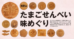 小麦粉・砂糖・卵を主原料にした、ほんのり甘い薄焼き菓子「たまごせんべい」のことを、和歌山では「和歌浦せんべい」と呼び、紀州銘菓として進物やおみやげ、お供えなどに幅広く利用されています。万葉集に詠われた「不老橋」「観海閣」の焼印を一枚一枚手押ししています。