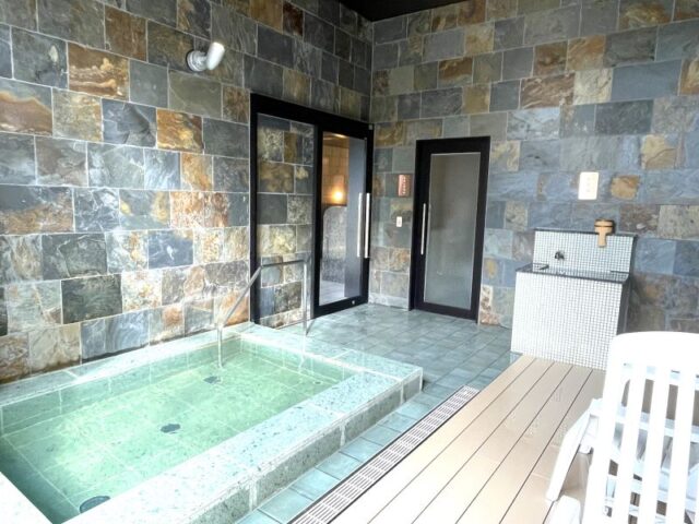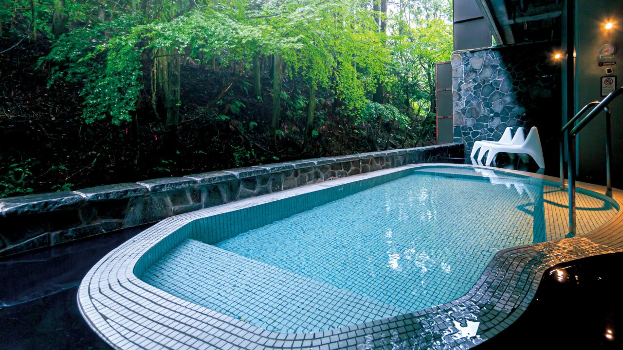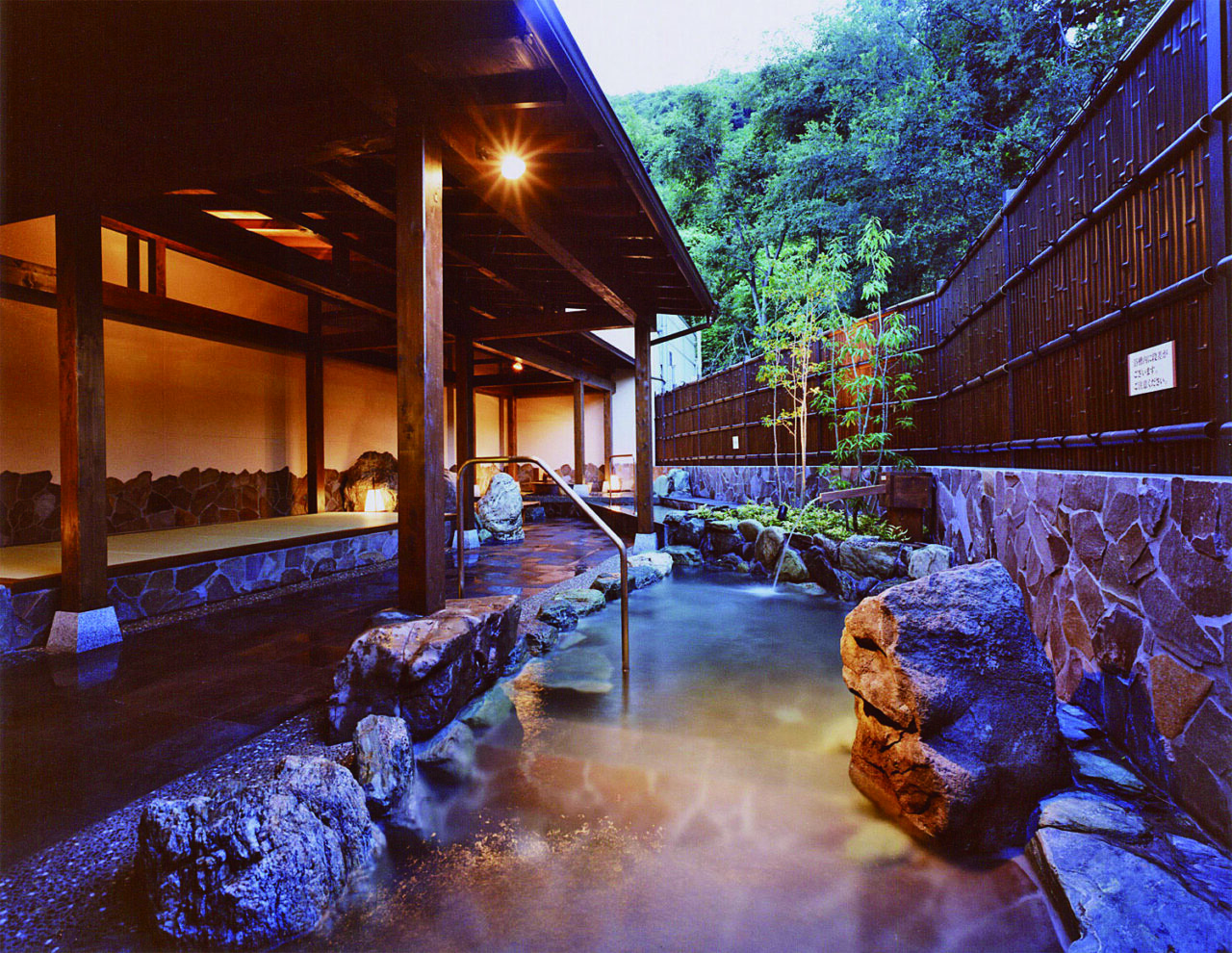 岩に囲まれた露天風呂は、庭の景色に溶け込むような落ち着いた空間。外風呂、内風呂どちらからも美しい中庭を眺められ、自然を感じながらゆったりとした時間を過ごせます。泉質はアルカリ性低張性冷鉱泉で、刺激が少なく、やわらかな湯あたりが特徴。肌になじみやすく、湯上がり後も心地良さが続きます。