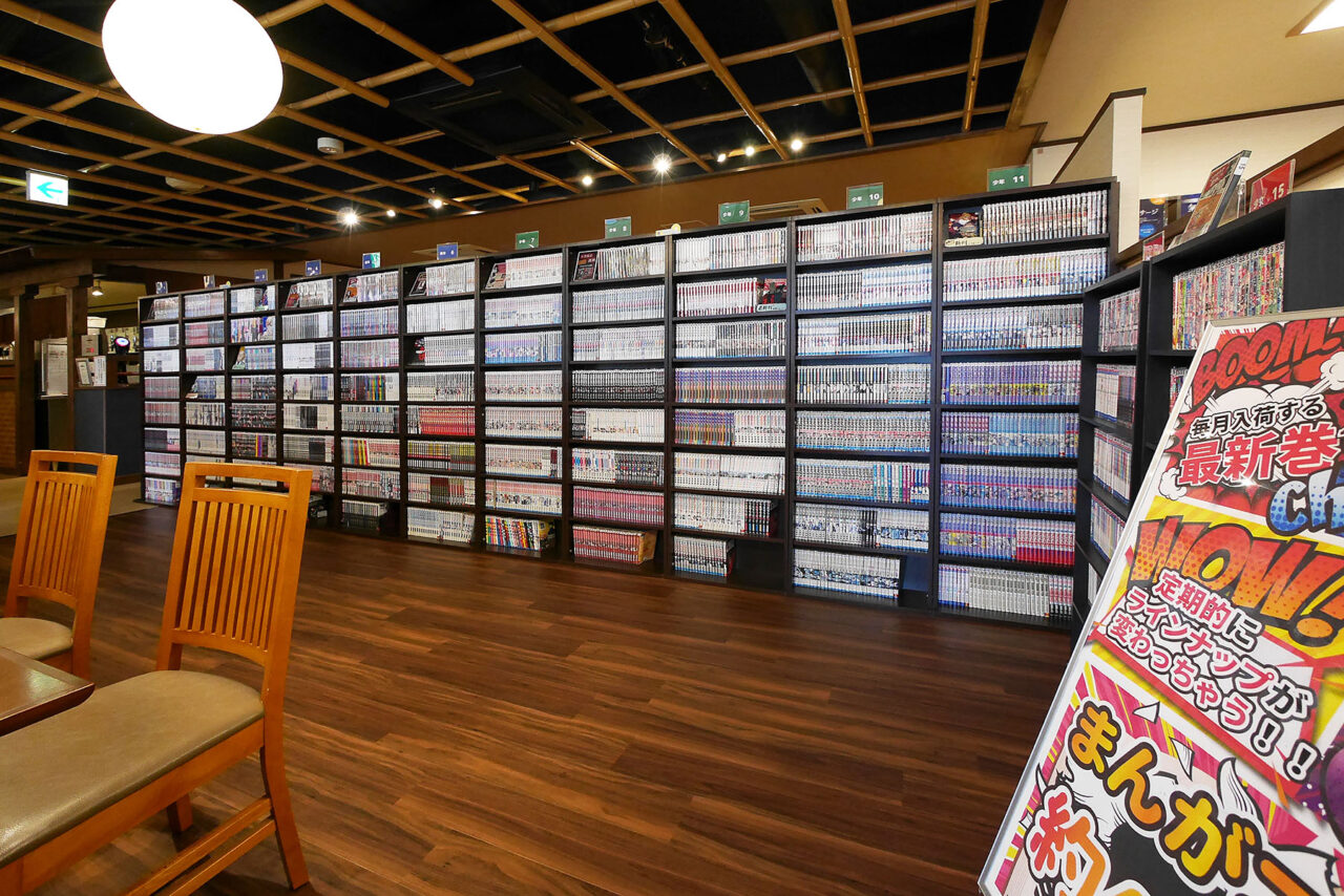 館内にはコミックコーナーもあり、入浴した後はゆっくり読書タイムを♪アニメ化された人気作から懐かしの名作まで約4000冊の漫画がそろっています。読み始めると、ついつい時間を忘れてしまいそう。