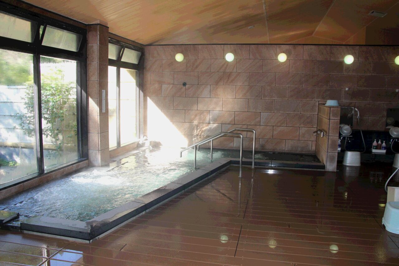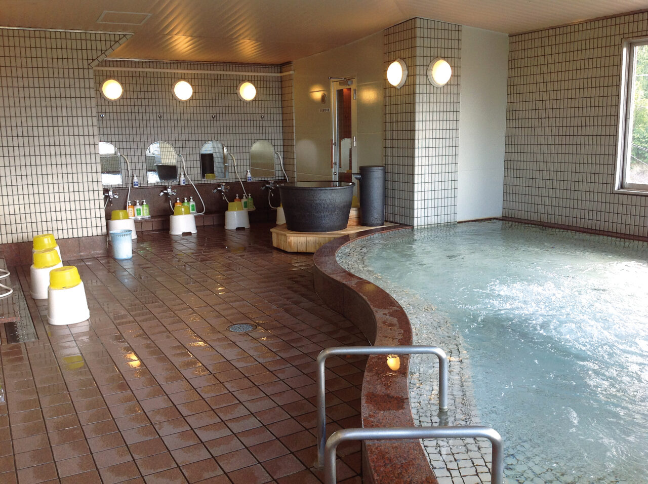 泉質はトロッとしたぬめりのある低張性アルカリ性冷鉱泉。大浴場とサウナを備え、南側の大浴場は日替わりで男女が入れ替わります。
