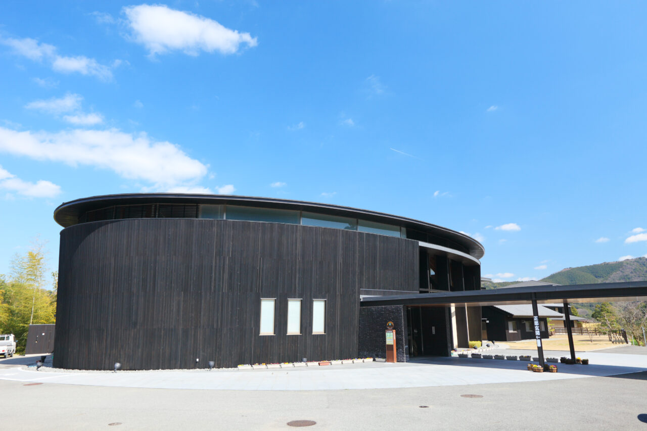 有田インターから車で約20分。のどかな山道を抜けた先に、海抜100mの高台に紀州材を使ったドーム型温泉施設があり、自然に囲まれた空間で絶景を眺めながら入浴できます。