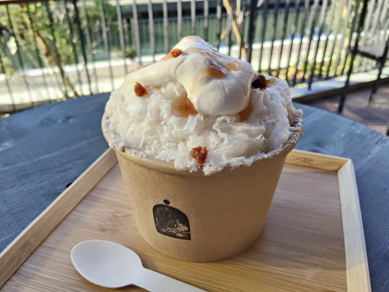印南町の「いなみの里梅園」の梅ソース、みなべ町の「ぷらむ庵」のはちみつ梅フレーク、御坊市の「樽の味」の麹の甘酒を使用。凍らせたミルク氷と甘酒のやさしい甘さが、甘酸っぱい梅ソースと絡んで、すっきりとした味わい。真冬でもあえて食べたい氷スイーツです。綿雪のようなふわっふわの食感がくせになります。