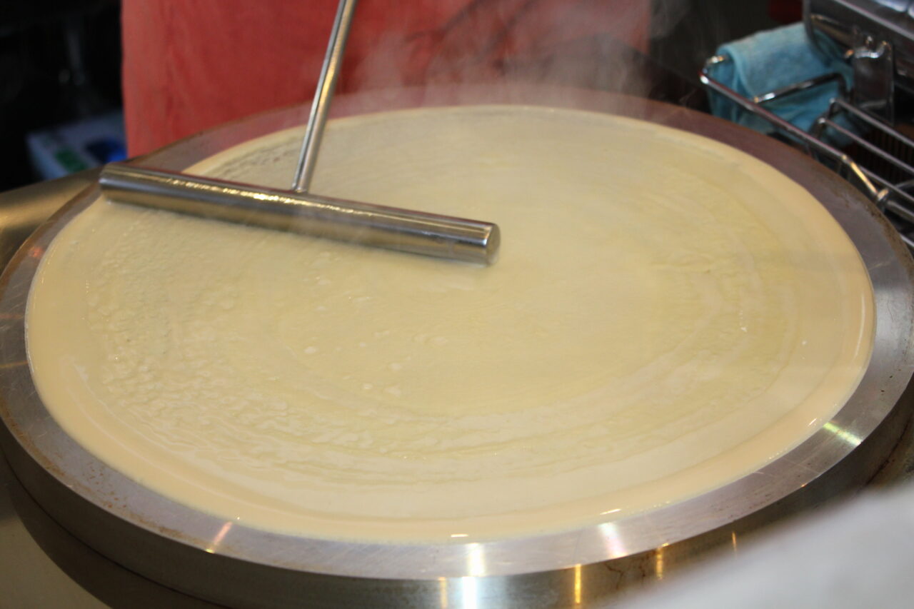 クリーム系のクレープはもっちりと、おかず系のクレープはパリさくにと焼き方を変えているそう。
