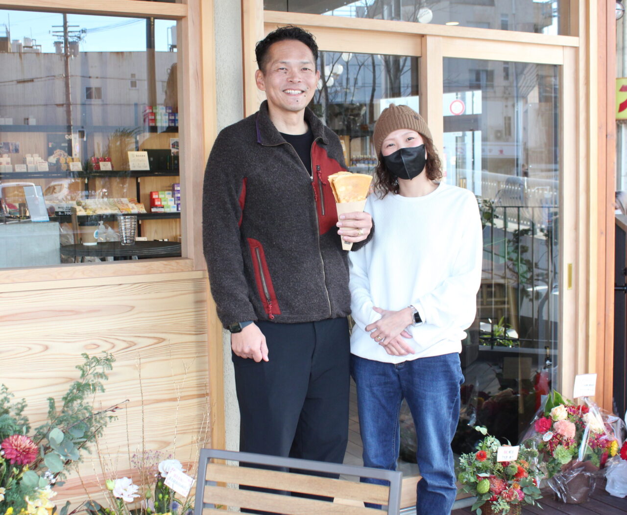 オープンを前に日高川町でクレープの修行をしたというスタッフたち。焼いているところを見せてもらいました。