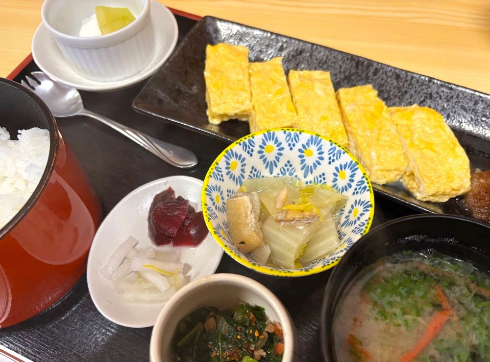 そのほかにも、ふんわりと焼き上げた「出し巻き定食」(小鉢2種類と味噌汁、デザートに食後のコーヒー付き)や、「親子丼定食」(1150円)、素朴なうまさが光る「いなり定食」(1000円)など、和の心を感じる定食が充実。毎日の昼ごはんにも、ちょっとしたご褒美ランチにも立ち寄りたくなります。