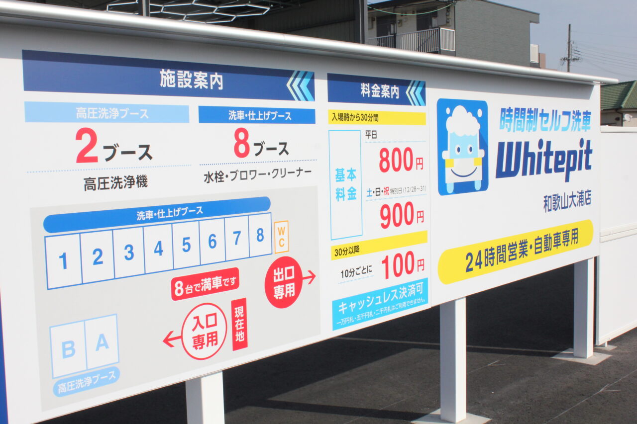 【和歌山市】「Whitepit(ホワイトピット)和歌山大浦店」予約なしで使える“時間制セルフ洗車場”