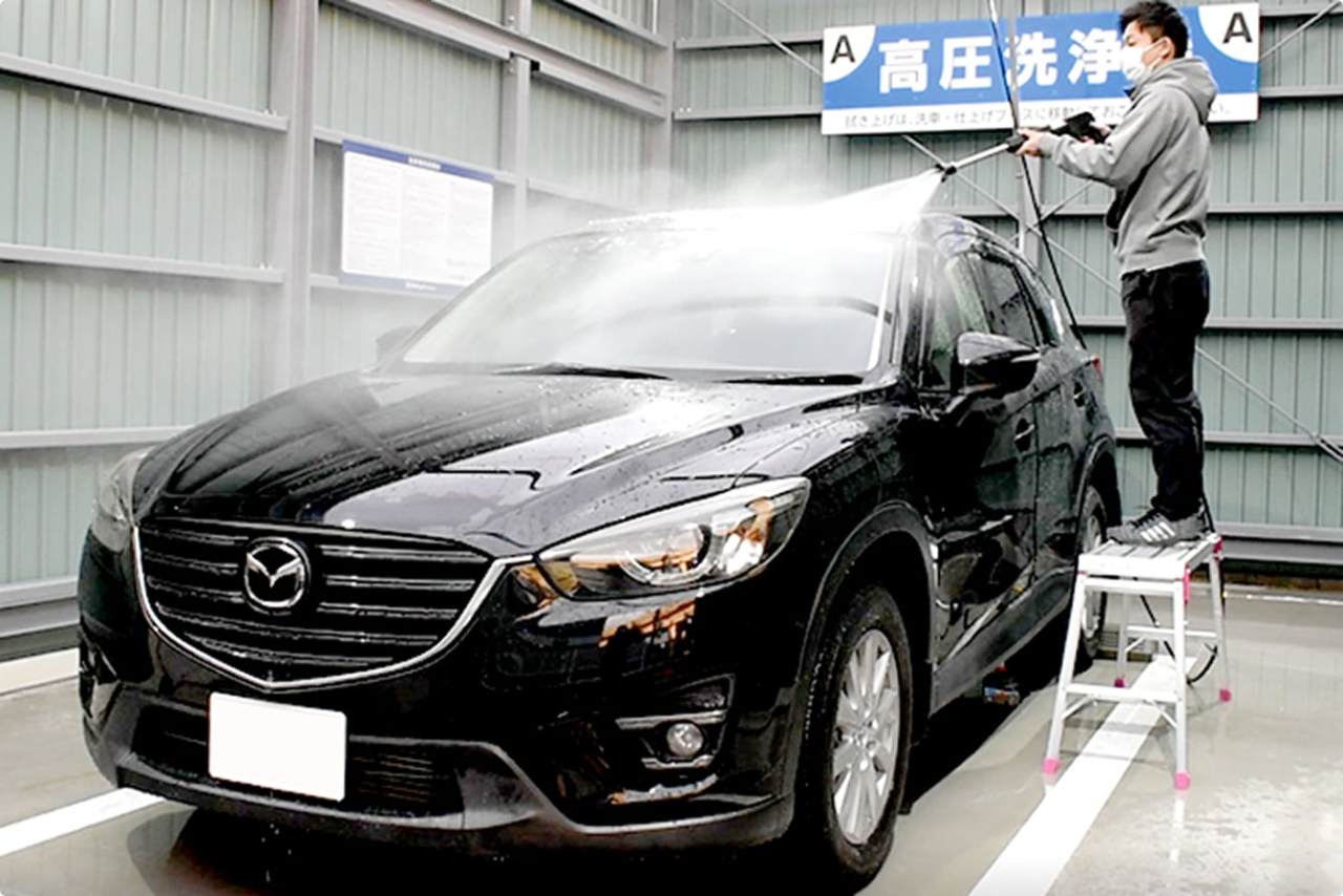 高圧洗浄ブースでは、高圧洗浄機を使用し、通常の水圧では落ちにくい泥汚れや砂ぼこりを効果的に洗い流せます。