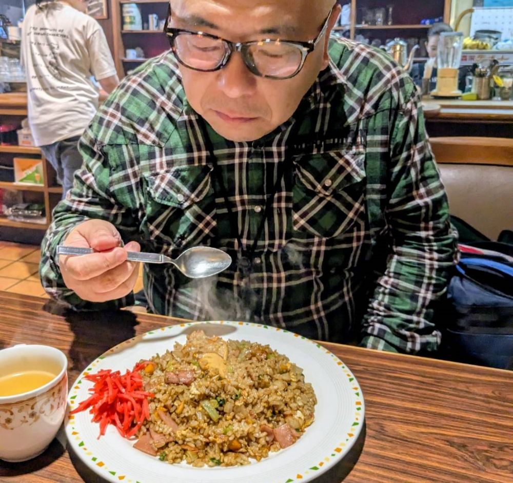 やきめしなのに味に奥行きがあり、やきめしなのに二口目には「うまっ」と声が溢れる。これを吉村氏に力説すると、喫茶店ハンターの吉村氏は哲学者のような顔で深く頷いた。