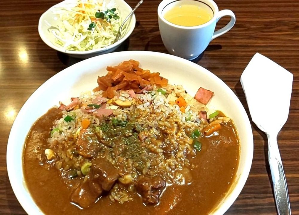 やきめしにカレーをかけた「カレーピラフ」(1050円)も人気が高いので、以前に編集者(S.Sat.SD)が食べたカレーピラフを載せときます。