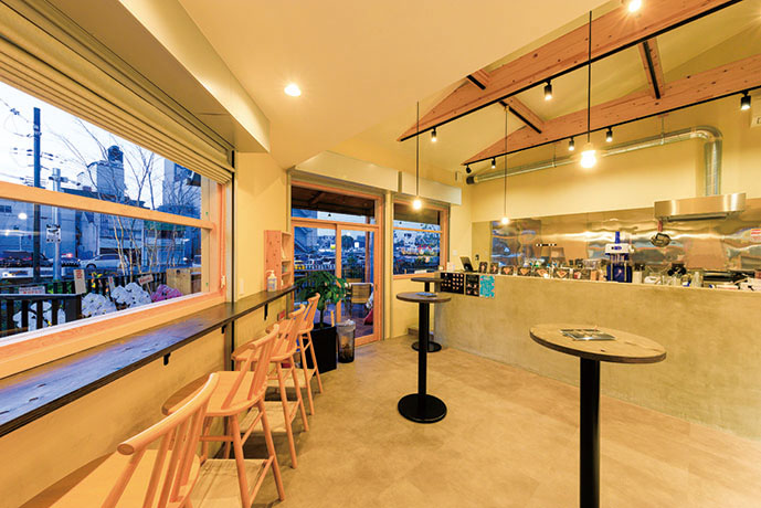 店内はカウンター席の他、テーブル席も用意。