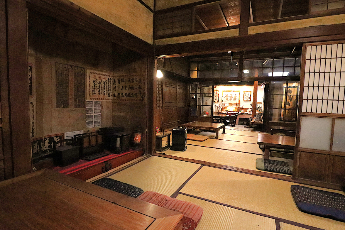 外観からも年月を感じますが、室内に入ると、手入れの行き届いた木の質感や、当時の面影を残す造りや骨とう品が印象的。