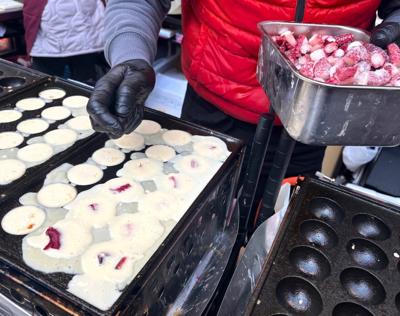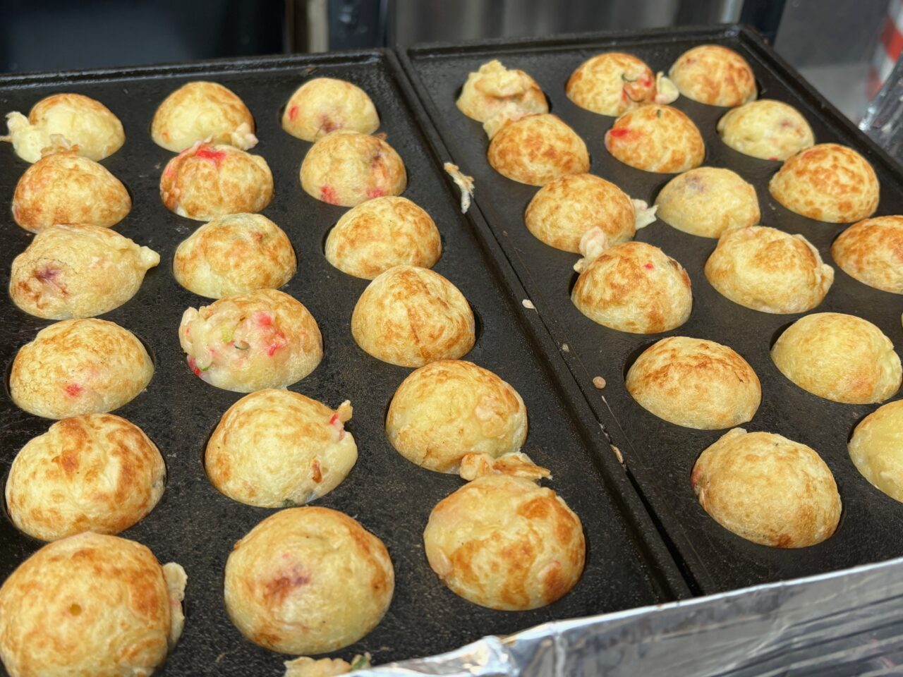 生地はあえて出汁控え目にし、あっさりと軽やかな味わいに仕上げることで、タコのプリッとした食感とうま味を引き出しています。いくつでも食べられると、フォルテワジマの買い物客の間で早くも評判です。