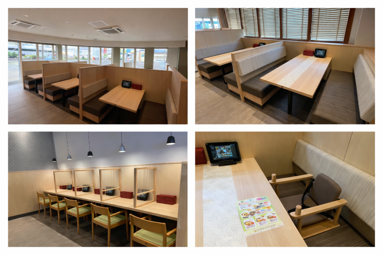 店内は、明るく清潔感のある落ち着いた雰囲気。周囲を気にせず食事を楽しめるボックス席をはじめ、グループで利用しやすいテーブル席、ひとりでも気軽に立ち寄れるカウンター席までそろい、さまざまなシーンに対応します。ファミリーはもちろん、仕事の合間のランチや一人利用にも使いやすい空間です。