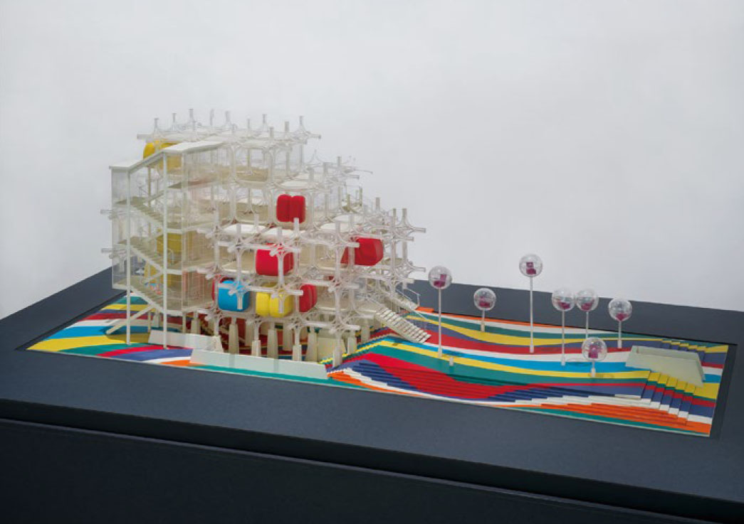 黒川が関わった1970年の大阪万博の3つのパビリオンを通して、黒川が提唱した「メタボリズム(新陳代謝)」の思想・世界観に迫った内容。黒川のスケッチやパビリオン模型など約200点が並びます。